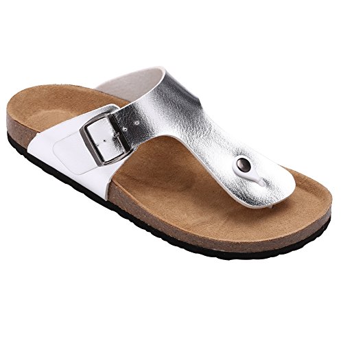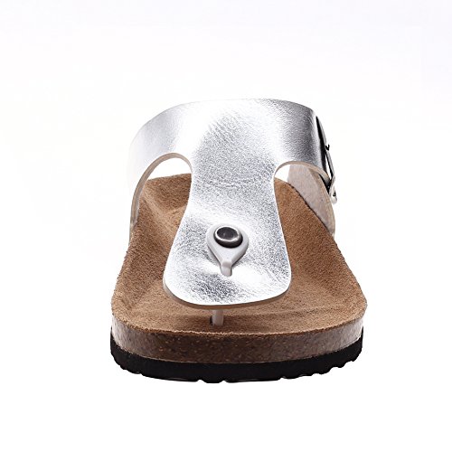 VVFamily Men's Outdoor Sandals Cork Bed for Hot Summer (Men Size 9.5, Silver)