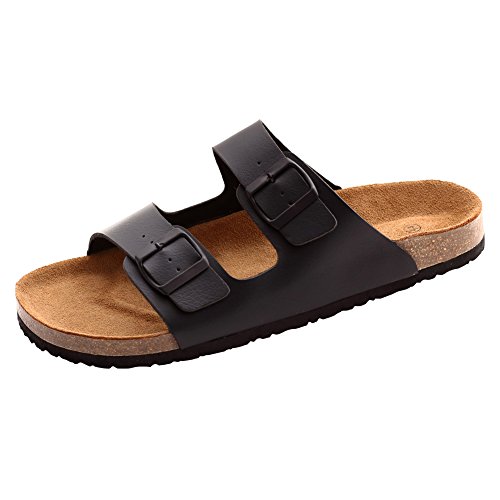 Men's Summer Beach Sandals Cork Footbed Slides Shoes byVVFamily (EU 44, Black)