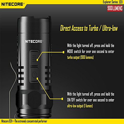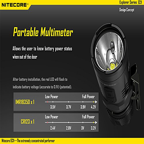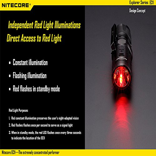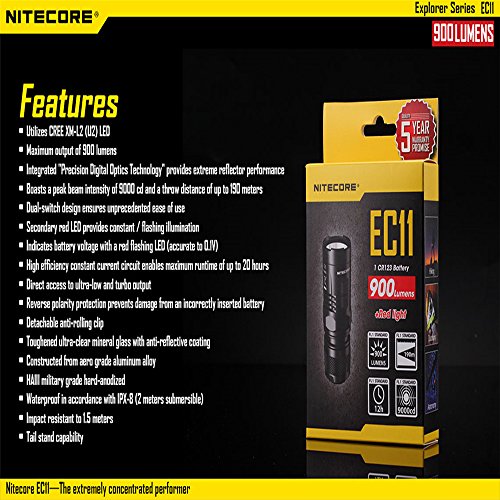 -. Binding : Tools & Home Improvement -. Brand : Nitecore -. Color : Black -. EAN : 0726630827694 -. Feature : High efficiency constant current circuit enables maximum runtime of up to 20 hours / Waterproof in accordance with IPX-8 ( 2 meters submersible) / Impact resistant to 1.5 meters / Secondary red LED provides constant /flashing illumination / Dual switch design ensures ease of use -. Label : SYSMAX INDUSTRY TRADING COMPANY LIMITED -. Manufacturer : SYSMAX INDUSTRY TRADING COMPANY LIMITED -. Model : EC11 -. MPN : EC11 -. PackageQuantity : 1 -. PartNumber : EC11 -. ProductGroup : Home Improvement -. ProductTypeName : TOOLS -. Publisher : SYSMAX INDUSTRY TRADING COMPANY LIMITED -. Studio : SYSMAX INDUSTRY TRADING COMPANY LIMITED -. Title : Nitecore EC11 900 Lumens Brightest Mini Cree XM-L2 U2 LED Flashlight with 1X Nitecore Rechargeable LMR 18350 Battery -. UPC : 726630827694