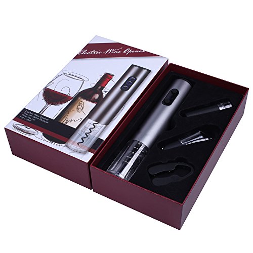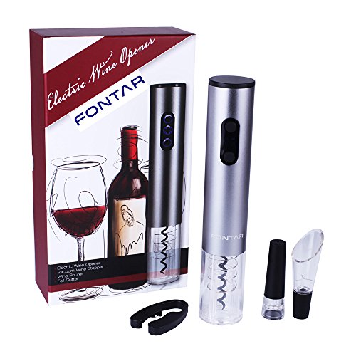 Electric Wine Opener,FONTAR 4 IN 1 Stainless Steel Automatic Wine Opener with Foil Cutter, Wine Ring, Sober pourer