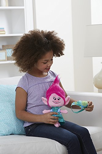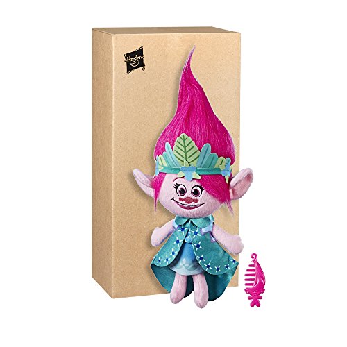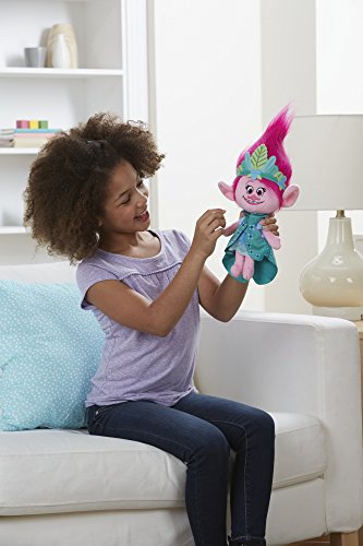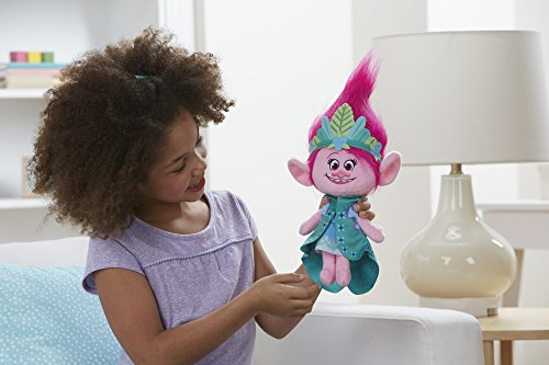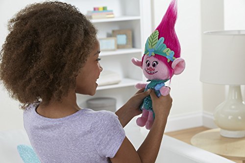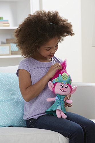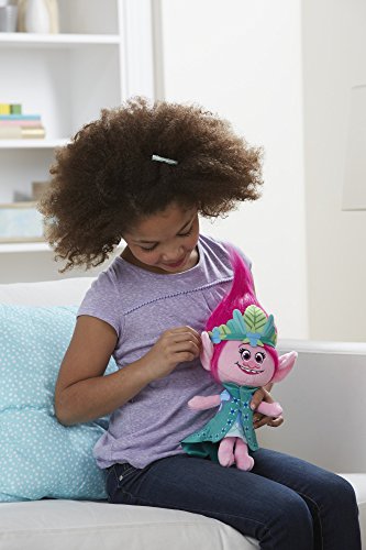 Experience the DreamWorks Trolls in a totally new way -- in soft and cuddly, talking plush form! Let DreamWorks Trolls Queen Poppy lift up everyone around her with her positivity! This soft and cuddly Queen Poppy Talkin' Troll doll talks and features cool sound effects straight from the animated movie. Dress her up in her coronation cape and crown to play out this pivotal movie scene. She stands at approximately 14 inches tall and includes lots of colorful, plush hair and a comb you can use to create trollicious styles!