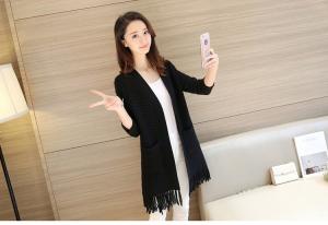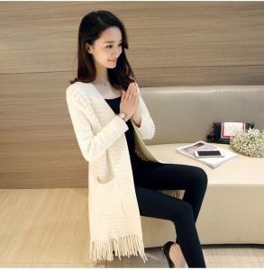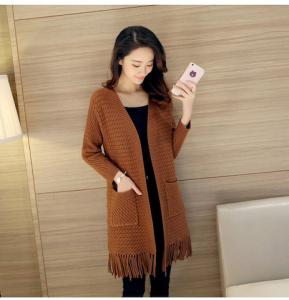 ニットカーディガン フリンジ 長袖 ニットコート 羽織り セーター 柄編み アウター ニットガウン