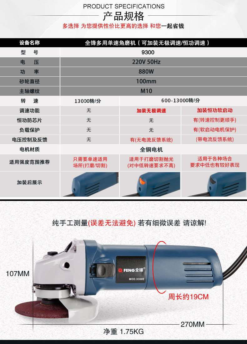 调速磨光机手磨机多功能切割机电动工具抛光机电磨打磨机角磨机