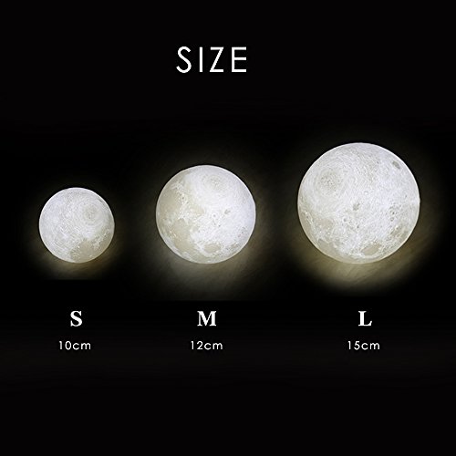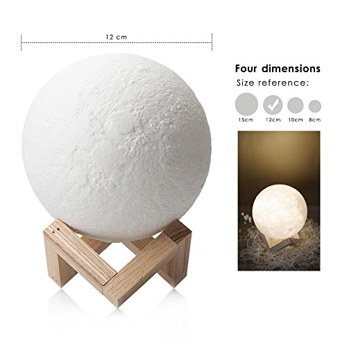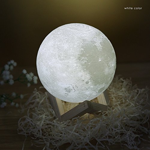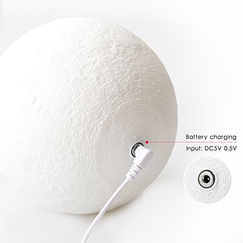 -. Feature : 1.3D three-dimensional printing technology: the use of 3D stereoscopic printing technology, simulation of the surface texture of the moon, the use of environmentally friendly straw as a material, wood lamp holder, gift box packaging. / 2. NiteCore Extreme Dimming: Use of a unique digital stepless dimming technology, touch light to adjust the light and brightness.Short touch switch lamp and change yellow or white color. Long touch switch brightness bright or dark. / 3.Battery Powered USB Charging:400mAh Built-in battery, after full charge, the lamp can use 12 hours,Rechargeable battery and USB charging (include cable without Adapter) / 4.Using the most advanced 3D printing manufacturing technology and precise astronomical data,to create a texture very similar to the real moon,Built in rechargeable lithium battery,With LED dual color light effect.It like a real moon. / 5.The beautiful design also naturally fit anywhere including office, living room, studying room bedroom and Outdoor Camping Picnic.It's not only an art gift of decorating,It also a good gift for kids baby boy girlfriend Friend Family.
