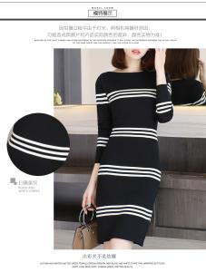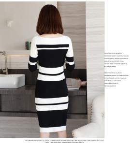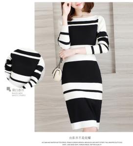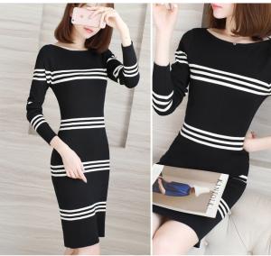 ニットワンピース セーター ラウンドネック ボーダー マルチボーダー 長袖 タイト フィット プチプラセール 秋冬 春