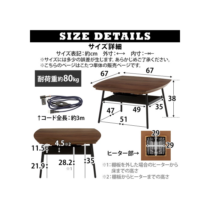 ※난로 이불은 별매입니다. ■상품 사이즈(단위:약mm) ■상품외 치수:폭670×(길이)깊이670×높이380