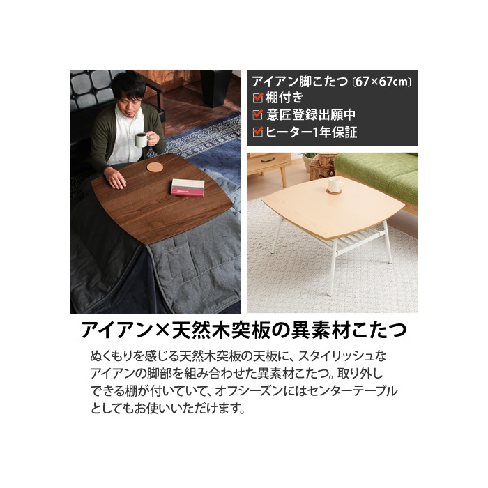 원본상품명: \ク?ポンで1,480円引き/ こたつ センタ?テ?ブル ロ?テ?ブル アイアン 棚 こたつテ?ブル 正方形 家具調 テ?ブル 67 幅 木製 机 送料無料 デスク ダイニング リビングテ?ブル ロ?タイプ 座卓テ?ブル コ?ヒ?テ?ブル ミニこたつ 棚付き モダン 北? おしゃれ