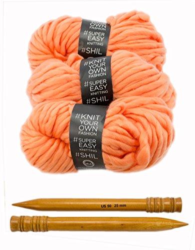 - KIT INCLUDES: 100% Acrylic Yarn 630g (163 yds/ 148 m), X-Large Handmade Wood Needles with Beautiful Swivel Top (US50/ 25mm), Simple Instruction Book & a Personalization Label