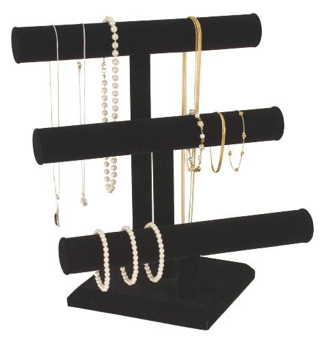- Title : KCF 49130 Jewelry T-Bar Display for Necklace and Bracelets, 3-Tier, Black Velvet, 13 Inches High