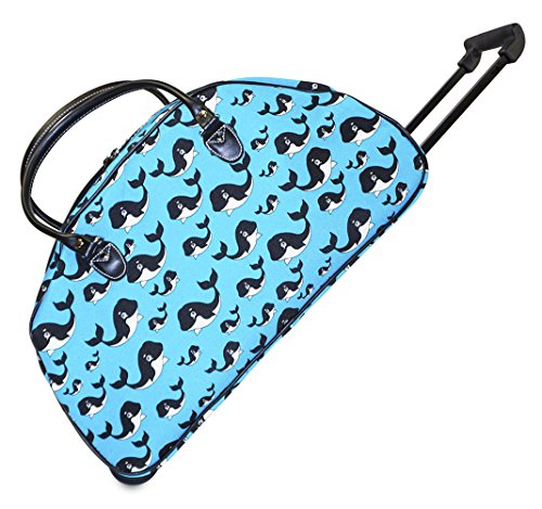 Product Description Stand out in style with this fun designer print style rolling duffle! This piece of lightweight luggage is great for jetsetters and can be used for a quick, close by staycation or for a weekend excursion to your favorite retreat. It's chic and fashionable design makes it a perfect choice for transporting gear for dance teams and cheer squads too! Easily glide through the TSA security checkpoint on inline skate wheels with your rolling suitcase for stress-free and efficient, stylish transport or you can carry your cute duffle by its included durable, detachable shoulder strap. Fully lined with black linen, keeping it clean is easy! Never lose your boarding pass, ID, or other smaller items with two exterior pockets on the front of this security checkpoint friendly bag. 0