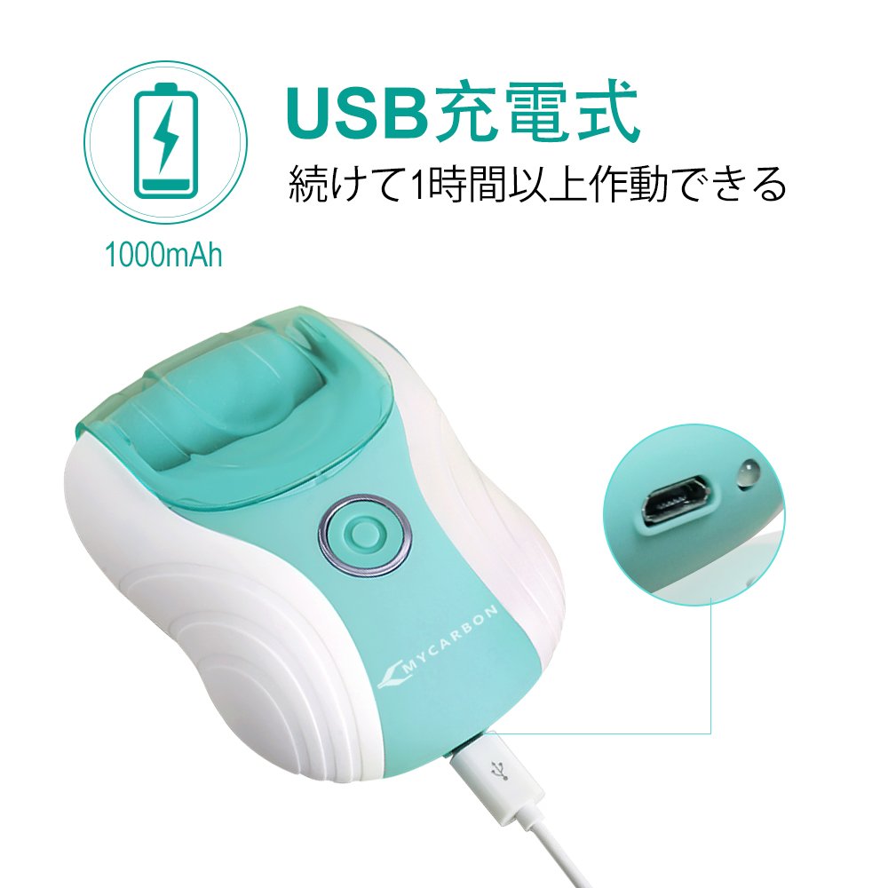 【1000mah 充電式】普通な角質リムーバーは乾電池使用していますが、長時間だと電池交換の費用もずいぶんかかるでしょう。MYCARBONはUSBケーブル(付属)で充電できるタイプで、1000mahのバッテリーが内蔵されています。専用充電器ではないので、モバイルバッテリーやPCなどで簡単に充電ができます。エコで経済的な角質リムーバーです!