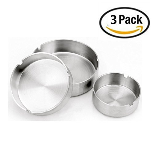 Yamde 3 Pcs Ashtray, Stainless Steel Modern Tabletop Ashtray , Cigarette Ashtray for Indoor or Outdoor Use, Ash Holder for Smokers, Desktop Smoking Ash Tray for Home office Decoration