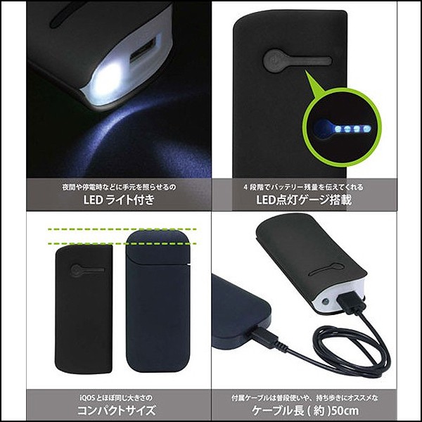 IQOS(アイコス)のバッテリー切れを防ぐ、【専用DC5V/2A】大容量4400mAhリチウム充電器!暗闇に必須!『LEDライト』搭載!充電器は、スマホにも接続OK!!IQOSを愛用して、最もタメ息をつきたくなる時...『吸いたいのに充電切れ!』『充電したいのに電源がない!』スマホの時と同じ現象が!!!そのスマホの緊急時の窮地を救ってきたのが、「モバイルバッテリー」でした!今、喫煙も煙草から「IQOS」に変わりつつある中、IQOS愛好家から、スマホ同様の”充電切れ”の問題が発生!!◎IQOSは、従来のスマホやiPhoneと同じ充電ケーブルでは、充電されません!【出力電圧5V/2A microUSBケーブル】が必要となります!その専用充電ケーブル対応のリチウムバッテリー!IQOS愛好家の皆さんの必需品です!!