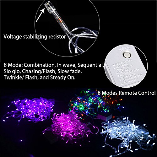 - 8 Modes Remote Control: 1, Long Liang, 2, Wave pattern change 3, continuous wave changes 4, Twinkle changes 5, slow flash change 6, On/Off 7, Dream Flash 8, Fast Flash change