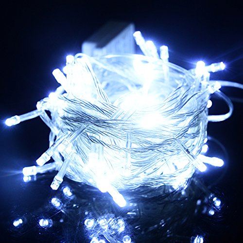 LED String Lights - LUOOV 10m with 12v Adapter and a Remote Control ,100 Leds 8 Modes Waterproof Indoor Decorative Silver Wire Lights for Wedding,Bedroom,Patio,Outdoor Garden,Christmas. (Pure white)