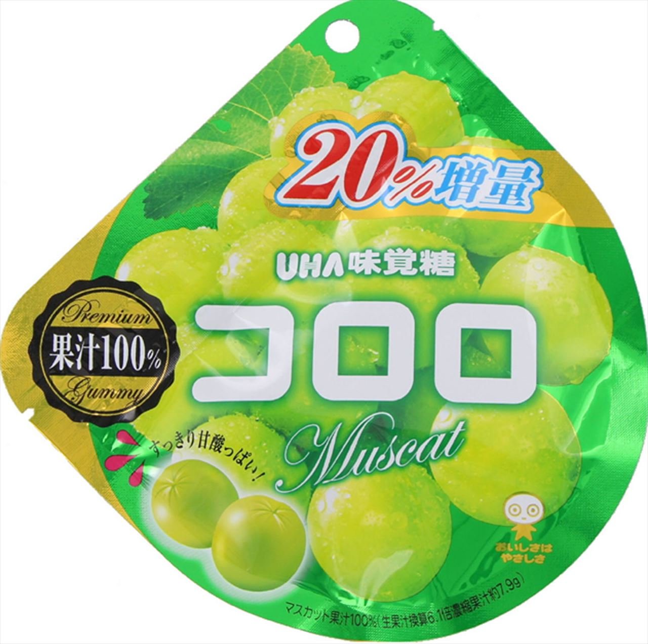 まるで果実! ?な贅沢グミ、コロロのマスカット味。果汁100%で濃厚かつ、華やかな味わいに仕上げました。口に入れた瞬間に口いっぱいに広がる、濃厚なグレープの味わいをお楽しみください。気分転換・小腹満たし・口寂しい時・ストレス解消・リフレッシュしたいときなどにぴったりです。