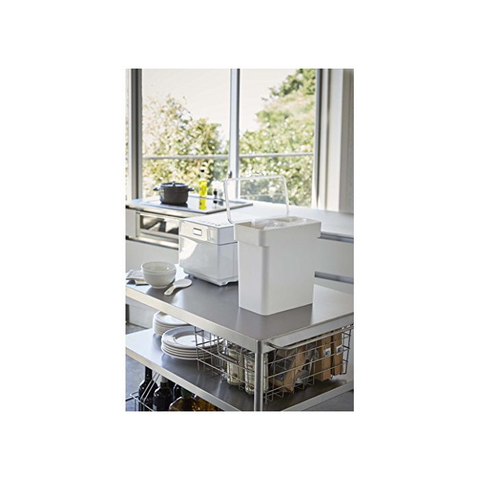 원본상품명: 山崎?業 米びつ 密閉 袋ごと米びつ 5㎏ タワ? 計量カップ付き ホワイト 3375