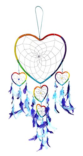 2 PACK - Dream Catcher with Five Hearts, Beads and Feathers – 23 inches – By South Asia Trading (5121)