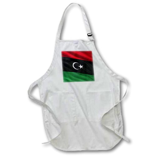 3dRose apr_175364_1 Flag of Libya Waving in The Wind-Full Length White Apron with Pockets, 22 by 30-Inch