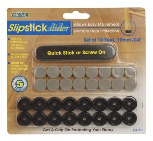 -. Title : Slipstick CB190 ¾ Inch Floor Protector Chair Leg Glides / Furniture Feet Sliders (set of 16) Self Stick or Screw On - Black