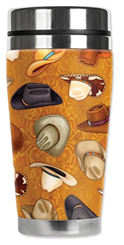Mugzie 1227-MAX "Cowboy Hats (tan)" Stainless Steel Travel Mug with Insulated Wetsuit Cover, 20 oz, Black