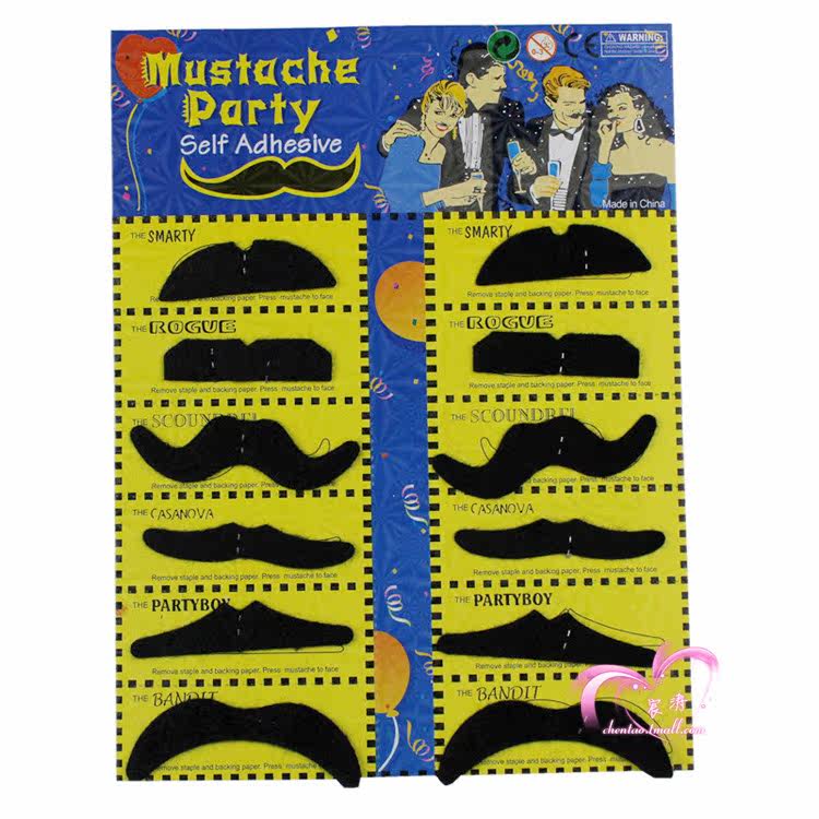 Halloween Christmas Party 12 Stylish Assorted Fake Mustache Moustache Handlebar Costume Pro Make Up