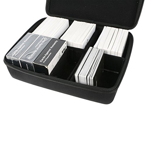 Premium Hard EVA Case Protects and stores Entire CARDS AGAINST HUMANITY SET. Fits up to 1500 New Cards Without the dividers (1300 New Cards with dividers) including the main games All 6 Expansions including the First Expansion, Second Expansion, Third Expansion, Fourth Expansion, Fifth Expansion and Six Expansion