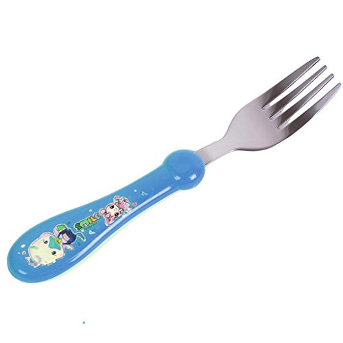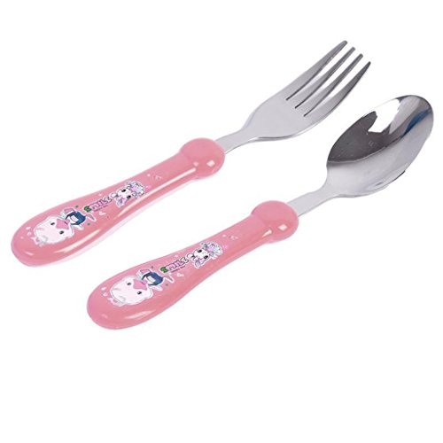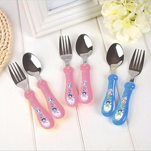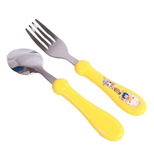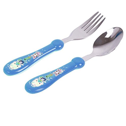 -. Feature : Type:Flatware / Age Group:5 Month Above / Color:Blue,Red,Yellow / Material:stainless steel / Package Included:1 X Stainless Steel Spoon 1 X Stainless Steel Fork