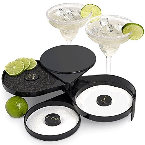 - 3 Tier Glass Rimmer, separate tier to rim salt, sugar and lime juice. Sponge in the Lime Juice section provided for better sticking and leveled rim