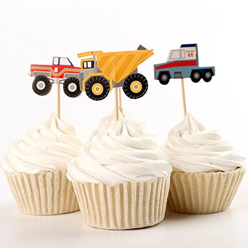 Fumee 24 Truck Tractor Excavator Dumpers Car Cupcake Decorative Cupcake Toppers for Kids Party