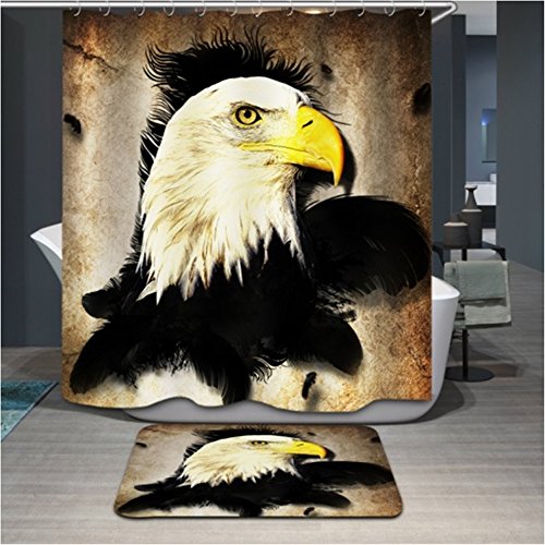 Eagle Shower Curtain, 72 by 80 inches, Bathroom Mildew Resistant Waterproof Anti Bacterial Polyester Fabric Curtains Hooks Set 35D print Home Decor Bath Accessories Collection