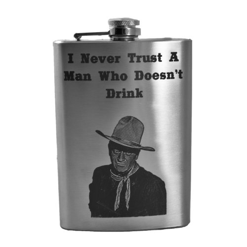 -. Brand : Hip Flask Plus -. Color : stainless steel -. Label : Hip Flask Plus -. Manufacturer : Hip Flask Plus -. ProductGroup : Kitchen -. ProductTypeName : KITCHEN -. Publisher : Hip Flask Plus -. Studio : Hip Flask Plus -. Title : 8oz I Never Trust A Man Who Doesn't Drink John Wayne Hip Flask