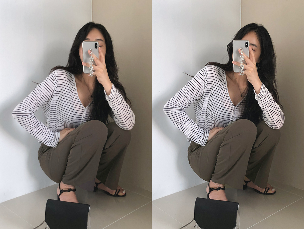두께 : 얇음 , 비침 : 없음