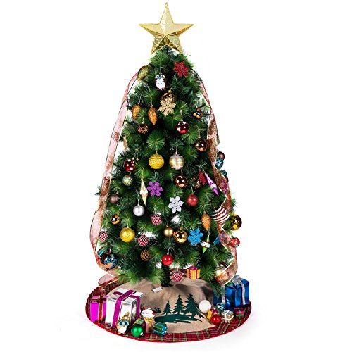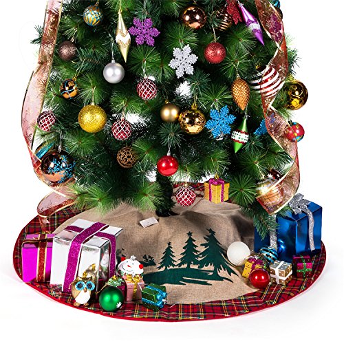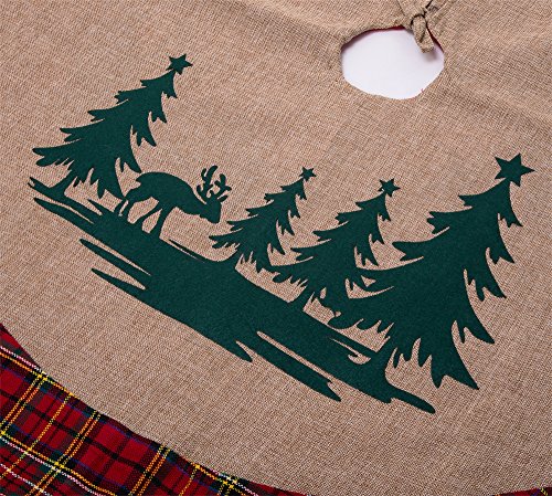 SANNO 42" Christmas Tree Skirt with Reindeer In the Woodland Collection Decorations, Tartan Border