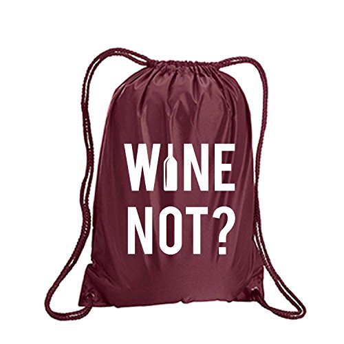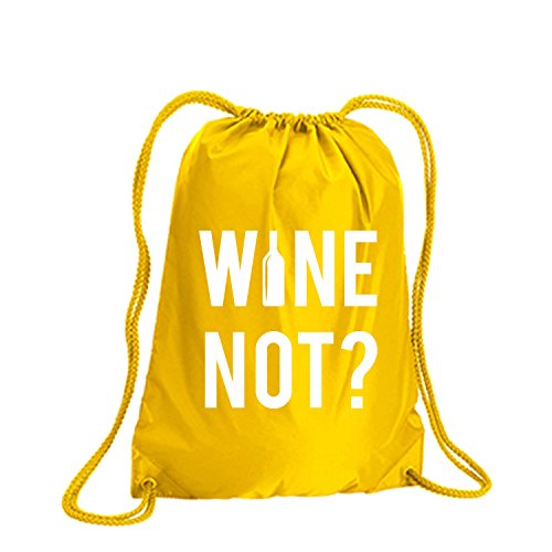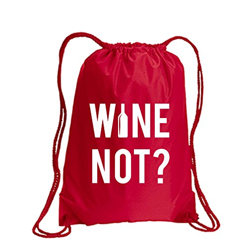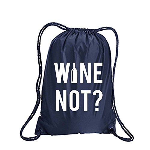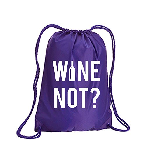 Product Description This durable and stylish nylon tote features "WINE NOT?" on a cinch pack tote with white ink. Bag comes in small and large sizes and is made of a durable 210 Denier nylon and has color-matched draw cords. Printed in the USA on an imported bag. 0