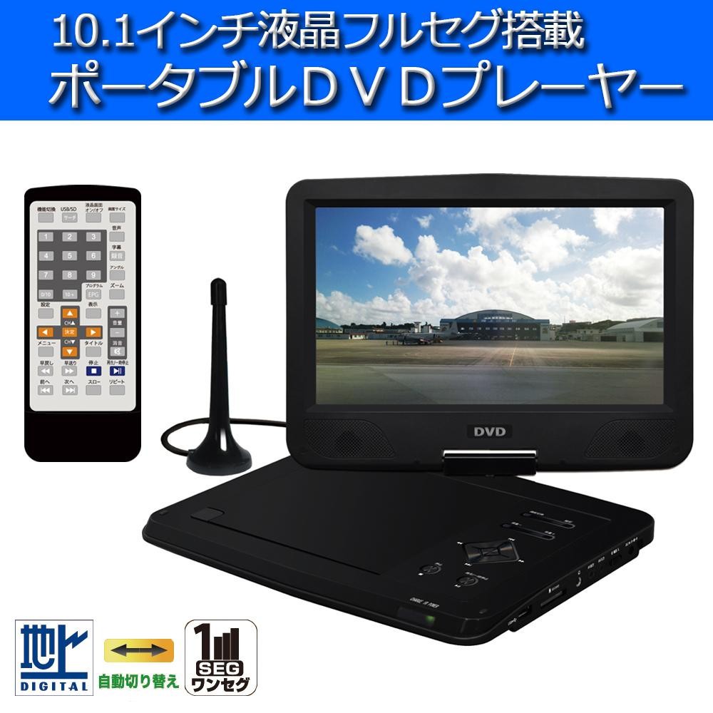 ACアダプターと車載用DCアダプター、充電バッテリーの3電源対応で自宅でもお出掛けの際も手軽にテレビや映画、音楽が楽しめます♪ 製造国:中国 素材・材質:ABS樹脂 商品サイズ:折り畳み時:約W265×D220×H43mm 重量:約990g(バッテリー含む) ※サプライヤー直送品【商品名】10.1インチ 液晶フルセグ搭載 ポータブルDVDプレイヤー EB-FD10H