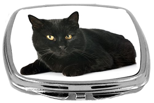 Rikki Knight Regal Black Cat in with Yellow Eyes on White Background Design Compact Mirror, 17 Ounce