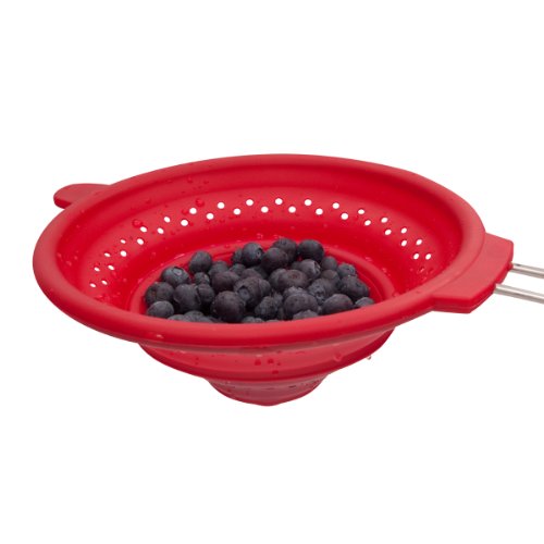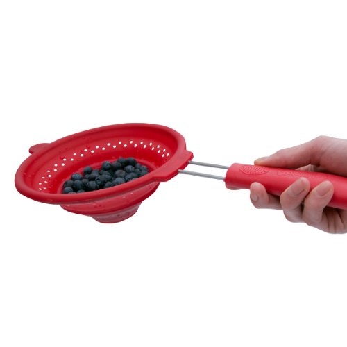Marathon Housewares KW030031 Large Easy to Clean and Store Silicone Strainer with Wide Grip, Red