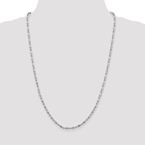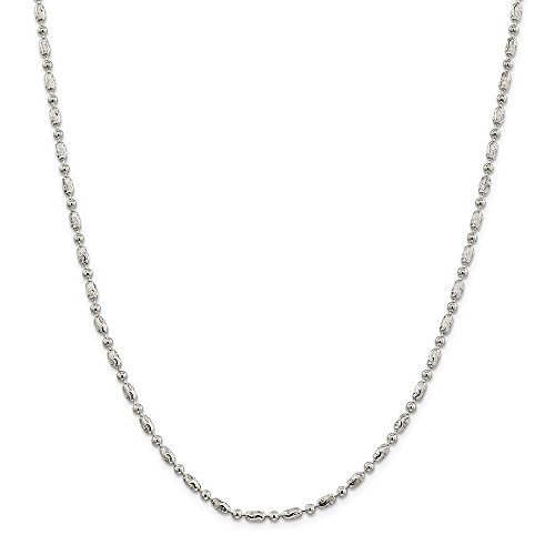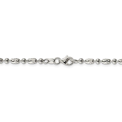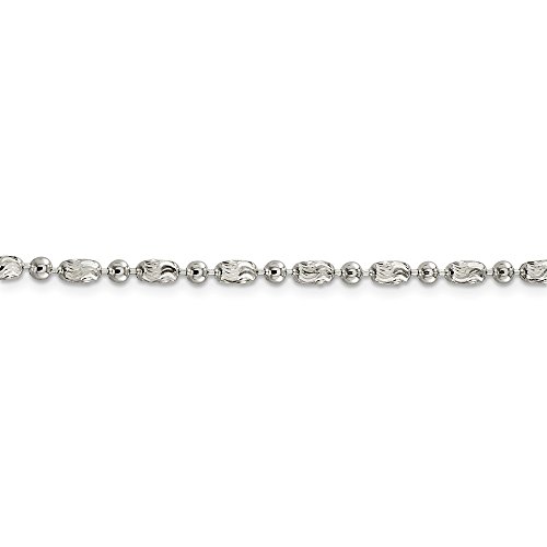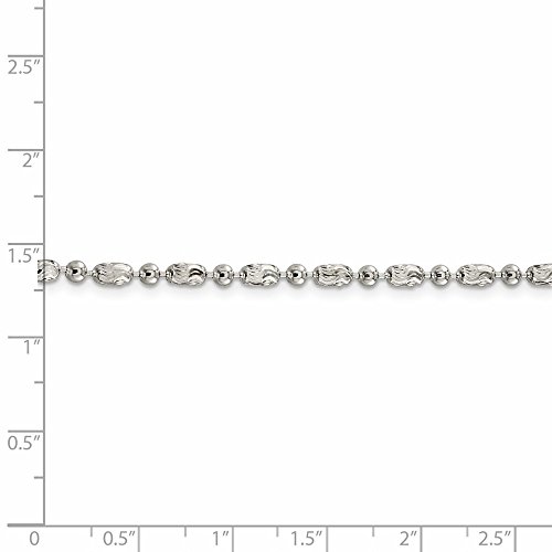 Solid 925 Sterling Silver 3mm Polished Round and Textured Oval Bead Anklet 10" - with Secure Lobster Lock Clasp