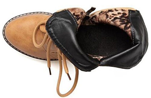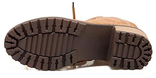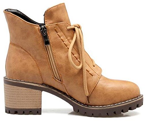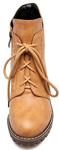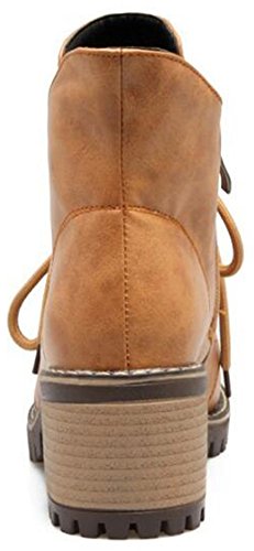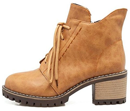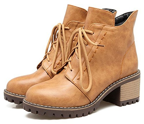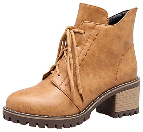 (Mofri)/Women's/Boots/DIRECT FROM USA/Mofri Women's Casual Stacked Block Medium Heel Ankle Booties Round Toe Lace up Short Martin Boots