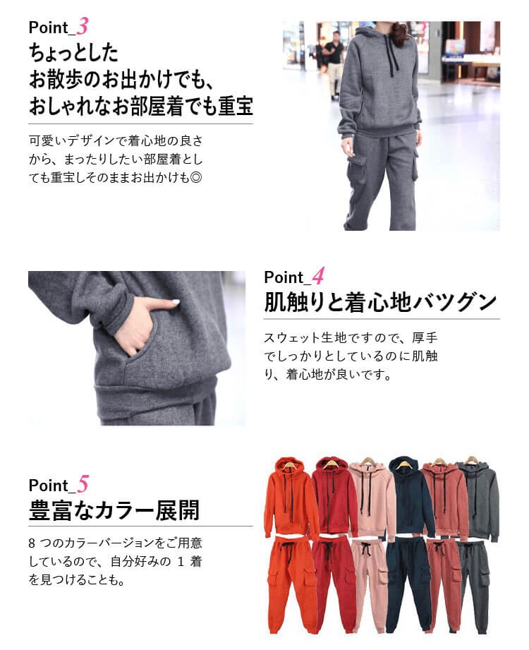 | 商品説明 | おしゃれで暖か♪ルーズでかわいい超楽チンパーカー上下セット! もこもこ裏起毛で肌触りはもちろん!軽くてあったかい~♪使いやすい一枚です♪ ちょっとしたお出 かけはもちろん部屋着、ジム通い、ダンス、スポーツなど…様々な場面で使いたい優秀アイテムです☆ |
