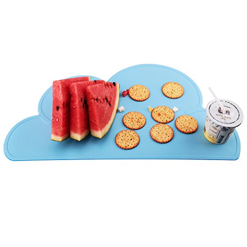 -. Feature : Material : Food-Grade Silicone Placemat -- This Baby Placemat is Made of Non-Slip, Food-Grade Silicone and Free of BPA, PVC, Lead, Latex, and Phthalates. / Non-Slip:This Silicone Baby Placemat can't promise to stick to table definitely ,but it can reduce tipped bowls / plates / Easy to clean:Reusable,Gets Most of the Mess Off. Easily Wiped Clean with a Damp Cloth and is Even Dishwasher Safe. / Raised Edges Contains Messes - - Cloud Shape Placemat with Raised Edges Help to Contain Messes During Every Stage of Feeding or Creative Play / Promote Appetite:Cute cloud shape baby placemat make your children interesting in eating food and decorative your desktop. Perfect for Mealtime at Home, Restaurant and on-the-go