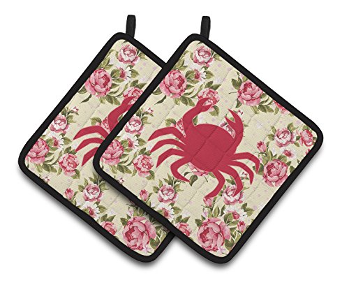 Caroline's Treasures Crab Shabby Chic Yellow Roses Pair of Pot Holders BB1024-RS-YW-PTHD, 7.5HX7.5W, Multicolor