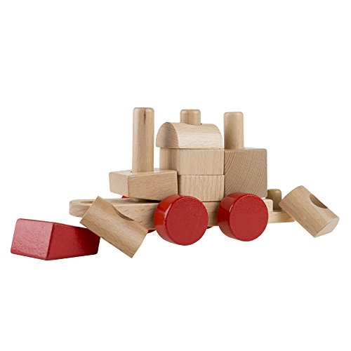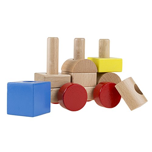 -. Feature : Classic wood interactive learning toy train set - includes stacking blocks and shapes! / The classic wooden train set is an easy-to-use, stacking learning train that teaches toddlers about trains, connectivity and movement. / Perfect for toddlers, this classic push and pull toy develops both gross and fine motor skills and promotes activity and exploration. / The train cars are a great and fun way for child learning and development. The train can be connected in different configurations with the string and peg hooks to help promote hand-eye coordination. / Fully connected and assembled train dimensions are 17" long x 3" wide x 4" high. The 20 different wooden pieces come in wood, red, blue, yellow and green.