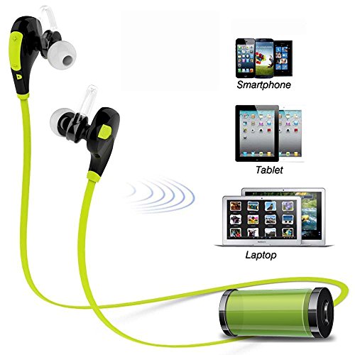 -. Feature : ADVANCED TECHNOLOGY: Fast UNDER 2 HOURS charging. Built for Superior Comfort. With Bluetooth 4.0 and apt-X tech, the headphones ensure high-fidelity thrilling sound stereo music and clear speech within 35 feet. Invisible nano-coating technology and sweat-proof material protects earbuds against sweat. Clear sound, ideal for high quality music while running, jogging, cycling, skating, etc. / HIGH QUALITY GUARANTEE: Noise cancelling and wind noise reduction technology makes you enjoy a crisp and clear wireless sound in noisy occasion. Rubber adapters, unique flexible design and custom earbuds ensure you get it perfect fit and remain stable in your ear. Powerful rechargeable 80mAh battery increases your using time and let you to enjoy your audio from your cell phone or tablet with up to 8 hours of Talking/Playing time. / EASY ACCESS: Multipoint pairing - connect 2 mobile phones simultaneously. The simple user interface on one of the earphones allows you adjust the volume, play/pause, select songs and answer/hang up calls completely effortlessly. Built-in microphone for hands free calling. / COMPATIBLE WITH: iPhone 6/6s,6 Plus/6s plus, 5 5c 5s 4s,iPad Air, Samsung Galaxy S6,S5,S4,S3 Note 4 3, HTC M9 M8 M7, LG Flex 2 G4 G3 G2, Sony Xperia and Other Bluetooth Android iOS Smart Cell Phones/Devices. / WHAT YOU GET: Wireless bluetooth headphone, user manual, charging cable and spare earbuds.
