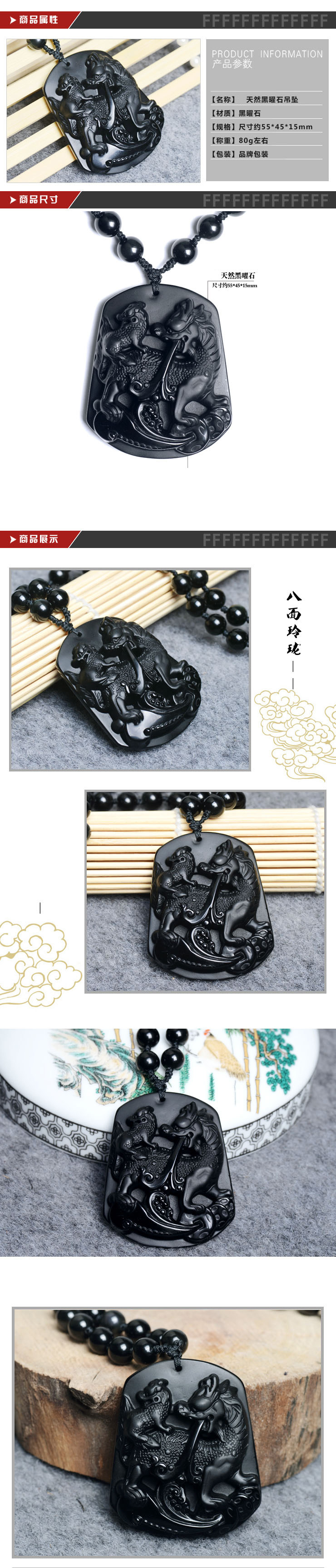 开光 天然磨砂黑曜石生肖吉祥物属龙-送财童子 吊坠