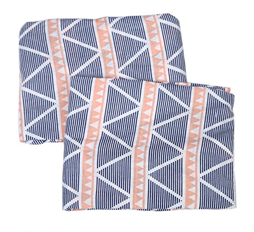 Bacati Aztec/Tribal Crib/Toddler Bed Fitted Sheets Cotton Muslin 2 Piece, Coral/Navy