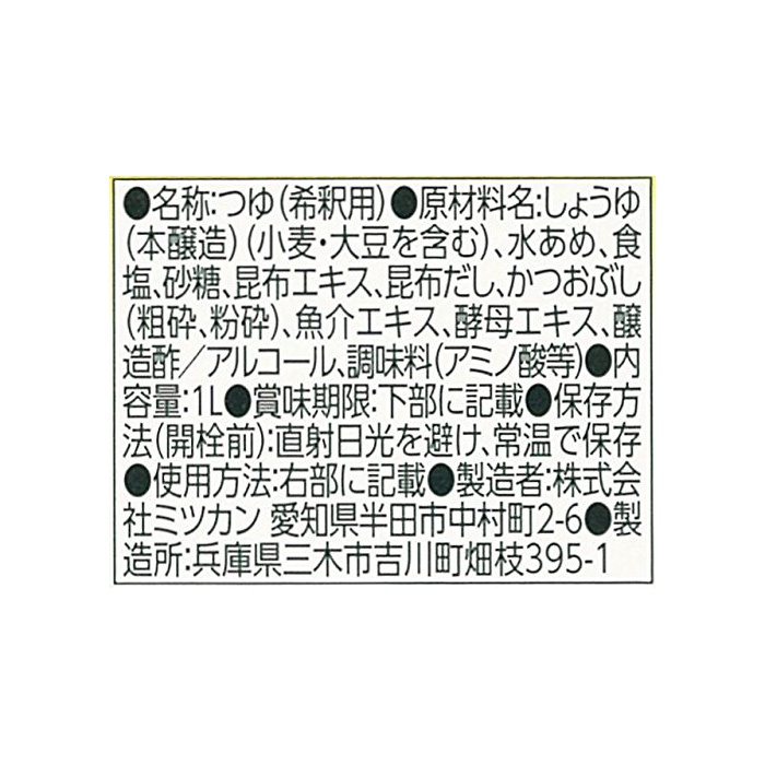 원본상품명: ミツカン 金色昆布つゆ 1000ml