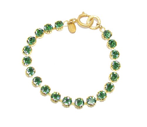 -. Feature : Yellow Gold plated tennis bracelet with Marine Green Swarovski crystals. / 7.5 inches with extender / Vintage Designer Style with matte metal finish / Designed in France by Catherine Popesco