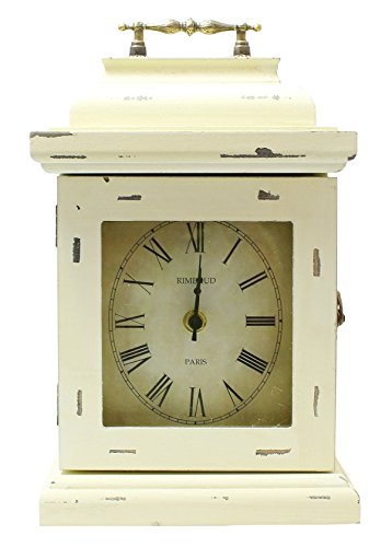 This Vintage tabletop Clock is made with a wooden, glass and iron material that is durable. It has black roman numeral numbers and white face that enables us to see the time clearly. Its cyma and ogee edge style exemplifies its classical look, perfect for those who love classics and antiques. Clock face measures 4.5" X 4.25" with sweep movement and requires two AA battery (not included)